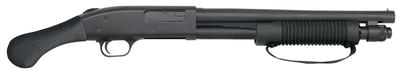 The 590 Shockwave Raptor bird's head pistol grip is uniquely shaped to minimize felt recoil. Classified as fully-compliant by the BATFE, this model has a 26.37" OAL and requires no Tax Stamp for transfers. This 590 includes all the features that have made Mossberg pump-actions the choice for millions worldwide: ambidextrous safety, dual extractors, positive steel-to-steel lockup, twin action bars, and a smooth operating anti-jam elevator. The 590 Shockwave features a convenient clean-out tube magazine cap, a front bead sight, and 'corn cob' strapped forend to keep shooter's lead hand clear of the muzzle. It has a 14" heavy-walled barrel with a cylinder bore.