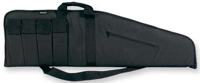 Bulldog's Extreme Tactical Rifle Case is constructed of durable, heavy-duty nylon, water-resistant outer shell, heavy-duty double stitching, and a #10 heavy-duty, full-length zipper with pull. It has a zippered accessory pocket, and a laminated Tricot, heat-resistant inner lining, and a total of 2.25" soft padding. The Extreme Tactical case has four Velcro-close external magazine pouches, and a removable, adjustable shoulder strap with swivels.