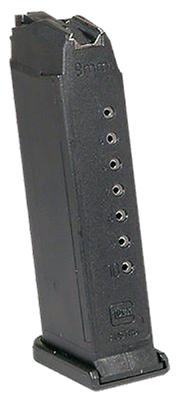 This magazine is constructed of polymer with a black finish and is compatible with Glock 19.