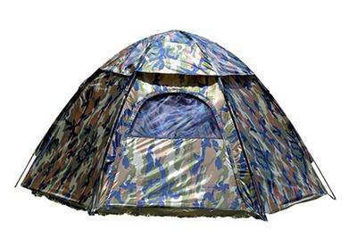 The Camouflage Hexagon tent measures 80-by-48-by-92 inches (W x H x D) and features easy set-up and take-down thanks to a three-pole, pin-and-ring frame system with shock-corded fiberglass poles. Ruggedly durable taffeta material has a water-resistant polyurethane coating and is flame retardant to C.P.A.I.-84 specifications.