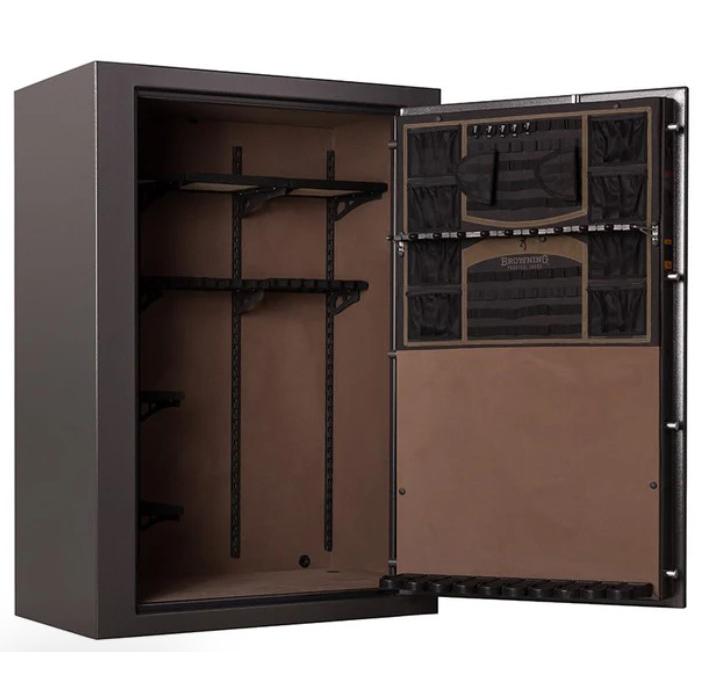 Call for local delivery options and price. Hawg 49. Gloss Hammer Gray Paint with Black Chrome Hardware. Electronic Lock. External Dimensions: 58?H x 42?W x 24?D. Long Gun Capacity: 49. Weight: 710 lbs. Fire Rating: 1550 degree for 80 minutes/ 1200 degree for 95 minutes. 12-Gauge Steel Walls. 1" Formed Door.