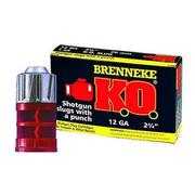 The K.O. gives you the safety of a quick and clean kill and offers 58 % more frontal area, resulting in massive energy transfer. Deep penetration, expansion up to .9", you name it, the K.O. got it. It features Brenneke's improved Foster design that gives you great knockdown power. Terrific accuracy. Its wad generates higher velocity, more power, and a flatter trajectory. The K.O. utilizes a lead point with ribs that point to the right to ensure smooth choke passage and patented rear slides into the point after the impact.