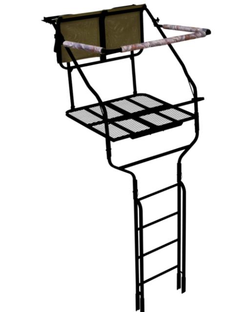 The L-220 Double Ladder Stand is built for those who hunt together, offering a spacious platform, unmatched comfort, and reliable safety features. With the patented ComfortMAX contoured tight-sling seat, this ladder stand ensures all-day comfort, while its durable powder-coated steel construction promises years of dependable use. Designed with ease of setup in mind, the L-220 provides a double-rail rigid ladder that requires no brace and includes a folding footrest and an adjustable padded shooting rail for added versatility.