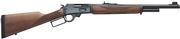 Lightweight and hard-hitting, Marlin's 1895 lever-action carbine is the rifle of choice for many professional hunting guides. The solid-top receiver is tapped for a scope mount with an offset hammer spur (right or left hand) for scope use. It has an adjustable, semi-buckhorn, folding rear sight and a ramp front sight with brass bead and wide-scan hood. This 1895G model has a hammer block safety, a 4-shot tube magazine, and richly blued steel finish with an American black walnut straight grip stock with cut checkering, ventilated recoil pad, and swivel studs.