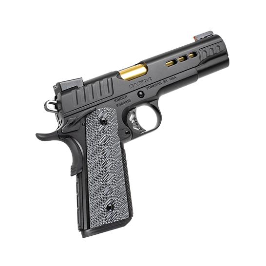 The RAPIDE (DN,NS). A truly unique 1911 with stepped cocking serrations, slide lightening cuts for faster lock time and TiN coated barrel for extreme durability. Equipped with Kimber Stiplex TM front strap stippling and the new G10 WavZ TM grips for extra griping confidence.