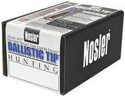 Nosler engineered the Ballistic Tip Hunting bullet to be very predictable and extremely forgiving. The polymer tip resists deformation in the magazine, initiates expansion upon impact, and is color-coded by caliber. The fully tapered jacket and special lead alloy core allows controlled expansion and optimum weight retention at all practical velocity levels. A heavy jacket base prevents bullet deformation during firing and acts as a platform for large diameter mushroom. Nosler's unique solid base boat-tail design, combined with the polycarbonate tip, dramatically increases long-range ballistic efficiency.