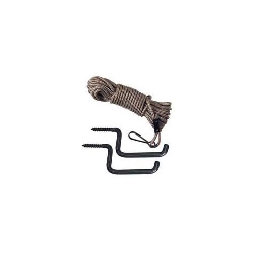 Includes 20' nylon hoist rope. Two easy-to-install bow & gun holders.