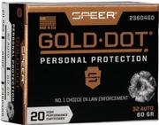 Speer Ammo Gold Dot Personal Protection 32(ACP) 60 GR Hollow Point 20 Bx/ 10 Cs