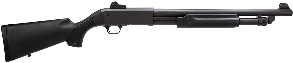 The Stevens 320 shotguns are well-built imported models carefully selected for their performance and value and provide many features only found on more expensive models. The 320 Security Pump features a proven rotary bolt design and dual slide bars for reliable operation. The receiver is a bottom load with right eject. This 12-gauge model has a black synthetic stock, 18.5" blued barrel with a cylinder bore and ghost ring sights.