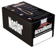 AccuBond is designed to be a highly-accurate big game hunting bullet suitable for use on a wide variety of game. Its bonding process eliminates voids in the bullet core, and AccuBond marries Nosler's traditional copper-alloy jacket with its special lead-alloy core. The result is a bullet that flies true, penetrates deep and retains its weight and won't cause extensive barrel fouling. The unique white polymer tip resists deforming and initiates expansion on impact. Nosler's Solid Base at the rear of the bullet acts as a platform for large diameter mushrooms. Boat tail configuration combines with the streamlined polymer tip for long-range performance and for easier loading. AccuBond is designed to reliably expand at a minimum impact velocity of 1800 fps.
