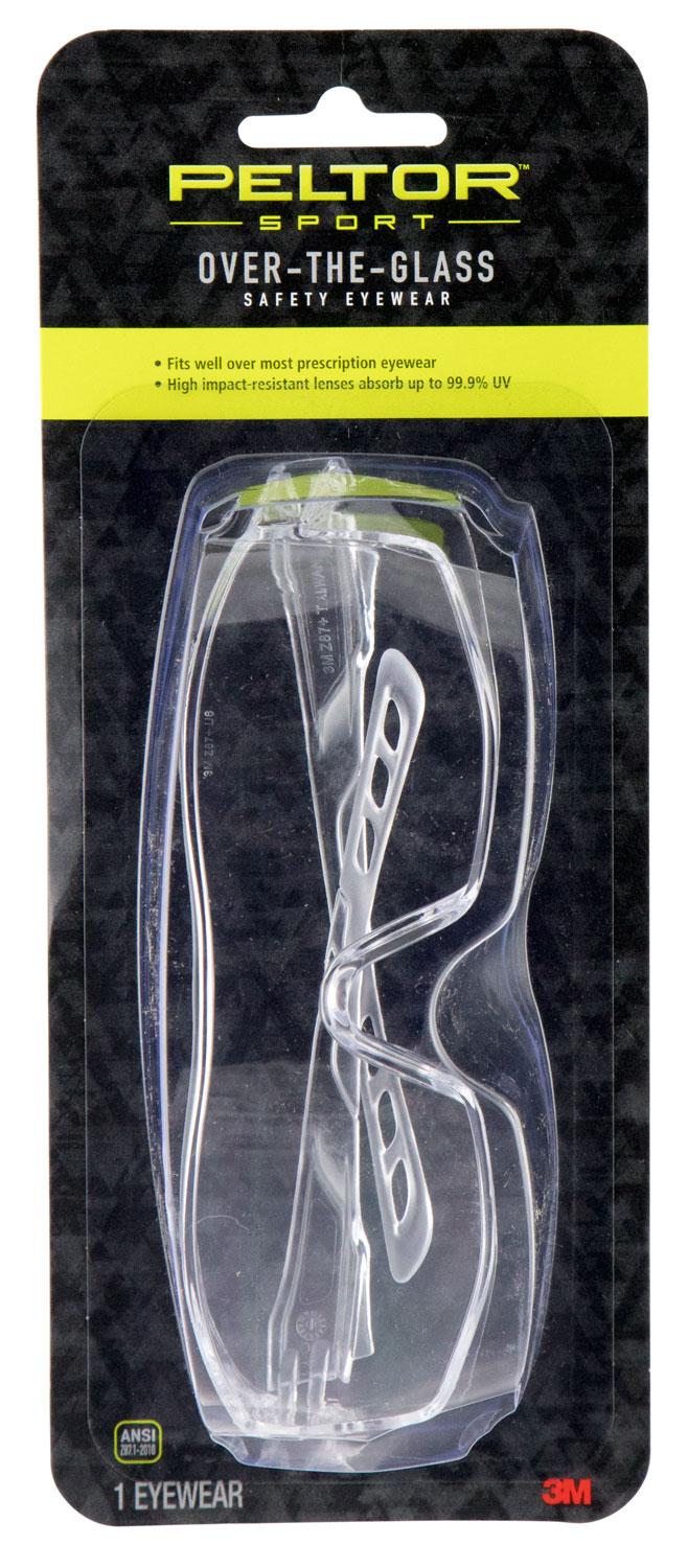 Peltor Sport Shooting Eyeglass Protectors help protect your vision and prescription glasses while shooting. Most prescription eyeglasses do not contain safety lens and frame combinations. Peltor Sport Over-the-Glass Safety Eyewear offers excellent protection, fitting well over most prescription eyewear, with built-in side shields to provide front and side protection. They are easy to clean with just warm water and air dry with a soft cloth. These high impact-resistant lenses absorb up to 99.9 percent UV, and meet the requirements of ANSI Z87.1-2010. This model has a clear lens, best for indoor applications or for outdoors when glare is not a factor.
