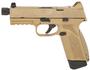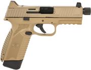 The FN 545 Tactical carries 15/18+1 rounds of 45 ACP at the ready, giving you the stopping power you need to face any scenario. Made red dot-ready with a crisp trigger; polished feed ramp and chamber; threaded .578"x28 to mount compensators and suppressors; Tritium lamp steel dovetail sights, co-witness with most MRD optics; high-endurance conical striker; interchangeable backstraps; MIL-STD-1913 rail; fully ambidextrous slide stop lever and magazine release. Includes two interchangeable backstraps, two magazines, four MRD mounting plates, owners manual, locking device and zippered case.
