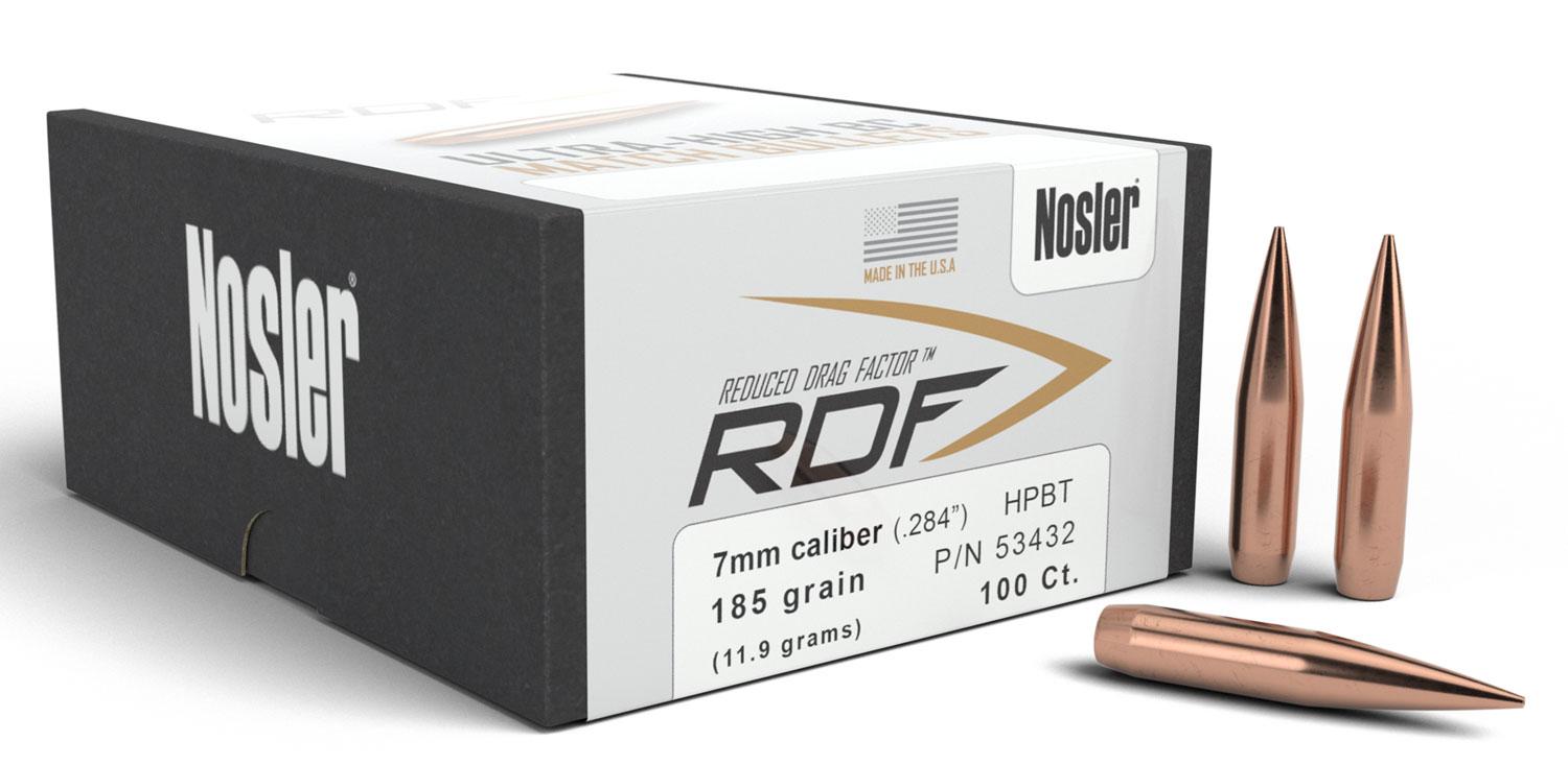 For those wanting to squeeze the most performance from their competition rifle, Nosler's RDF (Reduced Drag Factor) match bullet line is the ideal choice. The RDF line was designed from the ground up to provide exceptionally high BCs, which create the flattest trajectory and least wind drift possible. The keys to the RDF's outstanding performance are Nosler's meticulously optimized compound ogive and long, drag-reducing boattail, which make handloading a snap and create an incredibly sleek form factor. RDF bullets also have the smallest, most consistent meplats of any hollow point match bullet line, so there is no need to point or trim tips. This 7mm load has a 185 grain weigth and comes packaged 100 per box.