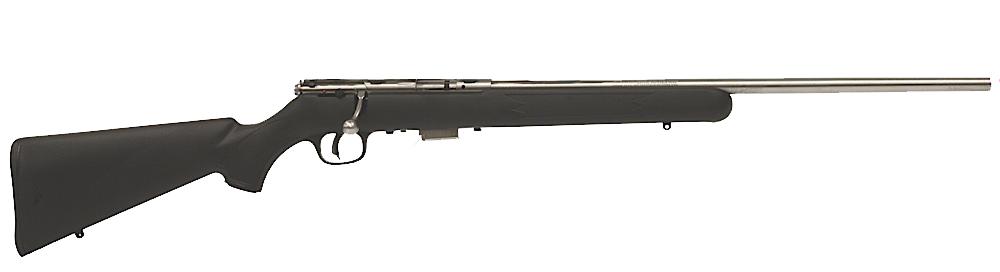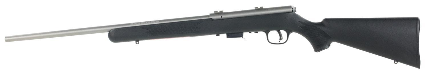 The 93R17 FSS bolt action rifle helps heighten the fun of rimfire shooting while maintaining Savage standards of meticulous crafting with the balance of modern, high-tech methods and old-world hand craftsmanship. It has a built-in adjustability AccuTrigger that provides a crisp, clean trigger pull, which enhances accuracy. This model features a two-position safety located immediately behind the bolt handle. It also features a stainless steel barrel, black synthetic stock with cut checkering and a detachable box magazine.