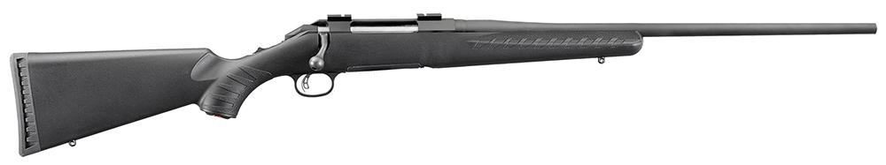 Ruger's American Rifle offers minute-of-angle accuracy that can make every hunt a success. The one-piece, three-lug bolt with 70 degree throw provides ample scope clearance and utilizes a full diameter bolt body and dual cocking cams for smooth, easy cycling. Its patent-pending Power Bedding, integral bedding block system positively locates the receiver and free-floats the barrel for outstanding accuracy. The ergonomic, lightweight synthetic stock with soft rubber buttpad is designed for quick, easy handling and blends a classic look with modern forend contouring and grip serrations. The American Rifle also has a Ruger Marksman adjustable trigger, cold hammer-forged barrel, and a tang safety. This Standard 308 Winchester model has a 22" matte black barrel, black synthetic stock, rotary magazine, and sling swivel studs.