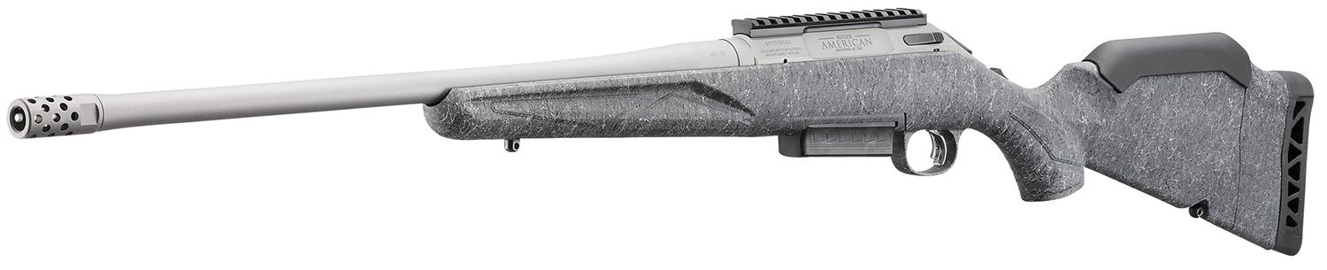 The Ruger American's professionally applied Cerakote coating on the barrel, muzzle brake, receiver and bolt handle results in a durable, easy-to-maintain finish. The stock provides excellent grip without being too sharp or abrasive. A soft rubber recoil pad features a large radius on the heel for easy shouldering and improved geometry that progressively collapses to reduce felt recoil. Removing the installed spacer allows for length of pull to be adjusted from 13.75" to 12". Installed low comb improves sight alignment when using magnified optics but can be removed when utilizing low-mounted sights. The medium contour barrel features deep spiral flutes that reduce weight at the muzzle end of the barrel to improve balance without sacrificing stiffness or accuracy. Threaded barrel with factory installed radial port muzzle brake is cold hammer-forged, resulting in ultra-precise rifling that provides exceptional accuracy and longevity.