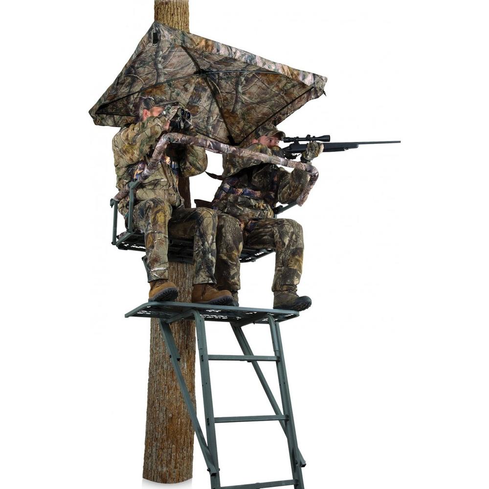 The Umbrella blind attaches to the tree above your stand. Keeps you dry and adds concealment. Realtree Hardwoods camo. Includes carry case.