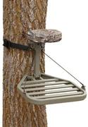 API Alumi-Tech Fixed-Position Treestands feature aluminum construction that enhances performance and decreases overall weight, providing years of trouble-free service. Slatted, Sure-Grip platforms with larger ribbed traction ridges for sure footing have contoured designs that attach to trees quickly and quietly and fold flat for easy packing. Each attaches to a tree with a heavy-duty ratchet strap for quick and easy installation. Realtree AP camo seat. Non-glare gray powder-coat finish. Full-body safety harness with climbing belt, suspension relief strap,and DVD included with all API treestands.