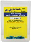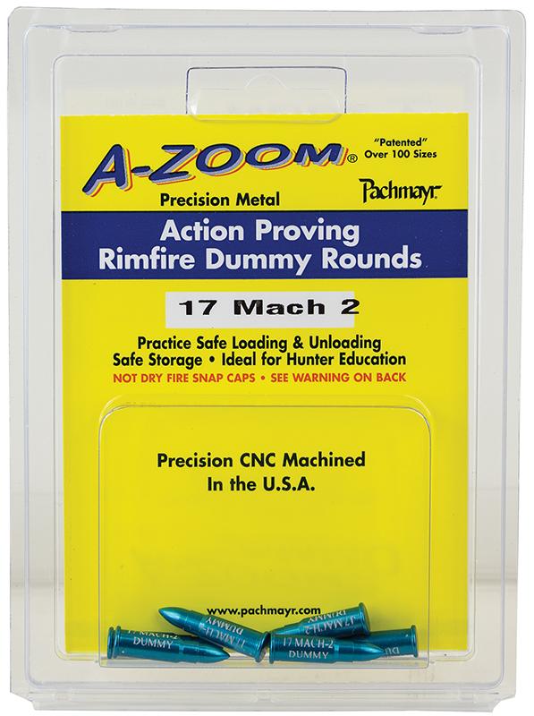 A-Zoom proving training rounds are precisely dimensioned for function testing and shooter training. These dummy rounds are not snap caps, but rather precisely dimensioned, functional dummies. A-Zoom training rounds are CNC-machined from solid aluminum and hard coat anodized. A-Zoom rimfire dummies are widely used for hunter education and teaching safe firearms handling.