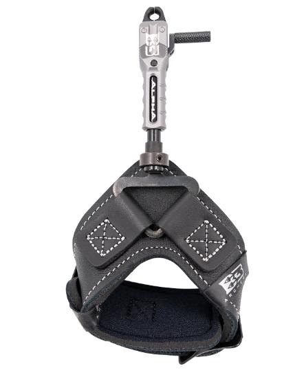 The Alpha Swivel index release features a roller-sear dual jaw design now with dual trigger positions and a newly located travel adjustment. The blackened anodized 7 series jaws are fully radiused, and can be used off the bowstring or with a string loop. The Alpha Swivel comes with the standard size wrist strap and white stitching. Our patented swivel connector adjusts to multiple length settings to fit different hand sizes and swivels 360 degrees. The swivel stem can even be locked from rotating with one simple set screw adjustment.