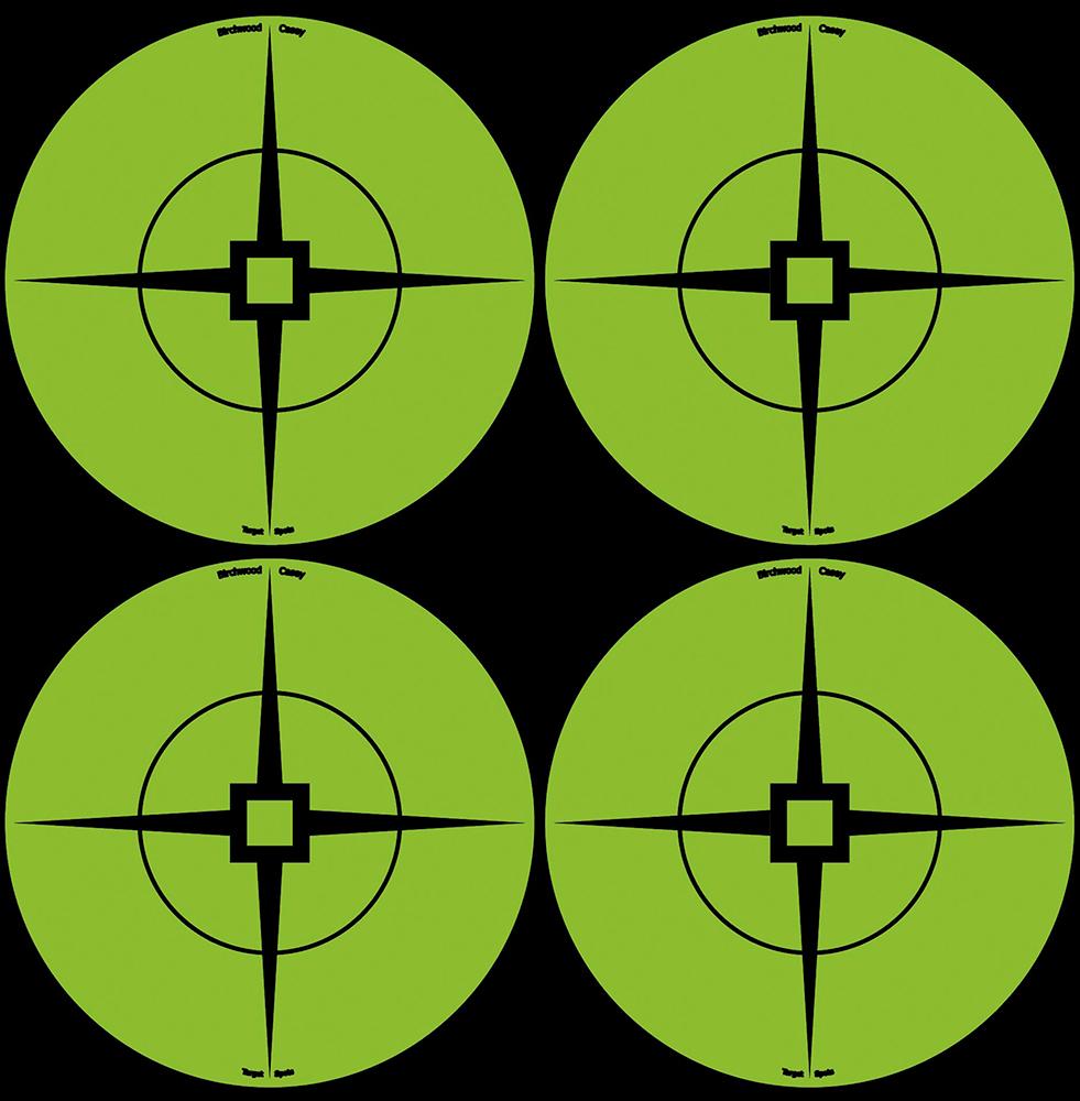 These adhesive Target Spots come in highly visible atomic green. The crosshair design fulfills the needs of open sight shooters along with scope users. Easily line up your open sights on the center square or lay the crosshairs along the vertical and horizontal diminishing lines. As an additional option, turn the Target Spots slightly to position the crosshairs in an X pattern.
