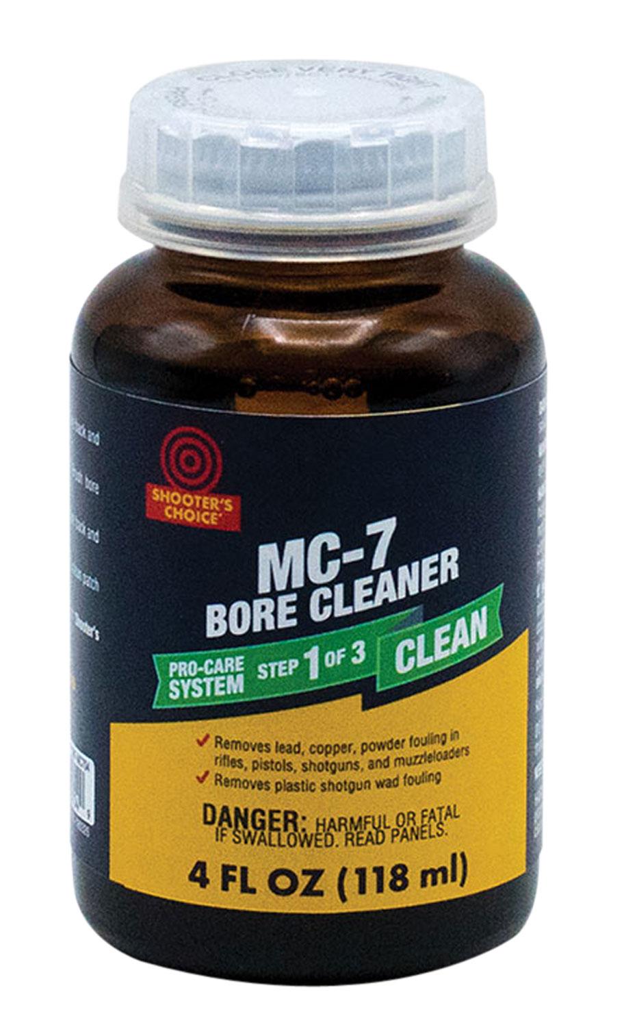 Shooters Choice Bore cleaner and conditioner removes copper, lead, powder and carbon fouling in one step. It is non-abrasive and dissolves plastic wad residue in shotguns. It conditions bore to resist fouling and removes rust, corrosion, contains no ammonia, and it also lubricates.
