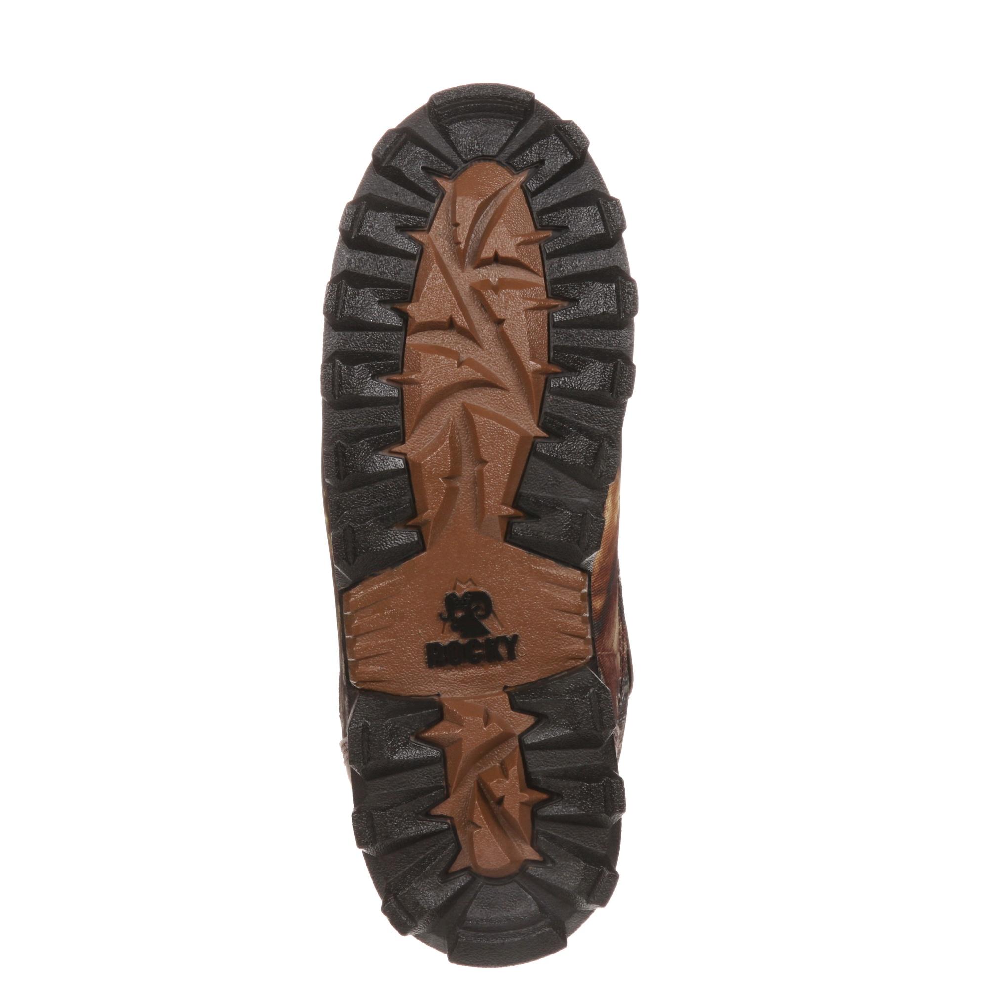 The boot's upper is remarkably durable and strong, perfect for any little one. Guaranteed Rocky Waterproof construction. Light and flexible cement construction. Full-grain leather trim and Mossy Oak Break-Up camo nylon. 1,000 grams of 3M Thinsulate Insulation.