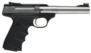The Browning Buck Mark Camper pistols are made to take along when you head to the great outdoors. They have an overmolded Ultragrip FX ambidextrous grips; alloy receiver with a matte stainless finish; tapered bull barrel; blowback action; ingle-action trigger and TruGlo Fiber optic and Pro-Target adjustable sights. Includes ABS case and magazine.