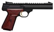 Browning's Buck Mark Field Target pistol is a 22LR with a 10-round magazine. This pistol features a full length Picatinny scope base, laminate cocobolo target grips, and Pro Target adjustable sights. This model features a heavy, round bull barrel full length Picatinny top rail. It is shipped in a 13" pistol rug.