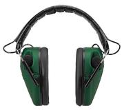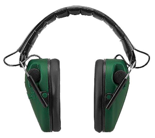 Caldwell's low-profile E-Max hearing protection combines great circuitry with a low profile earcup ideal for shotgun shooters and action shooters. The microphones in the E-Max amplify sounds below 85 decibels, which includes normal communication, range commands, and environmental sounds. Above 85 decibels, the microphones shut off for a split second to protect the shooter's hearing. Two microphones, one in each cup, give the user true stereo sound and allow the user to identify the directional source of a sound. It includes an integrated audio input jack allowing music to be played. E-Max hearing protection has a padded, adjustable headband, volume control knob, power indicator light, and folds compactly. E-Max earmuffs provide a 23NRR and run on 2 AAA batteries (not included). This model has a green finish on the earcups.