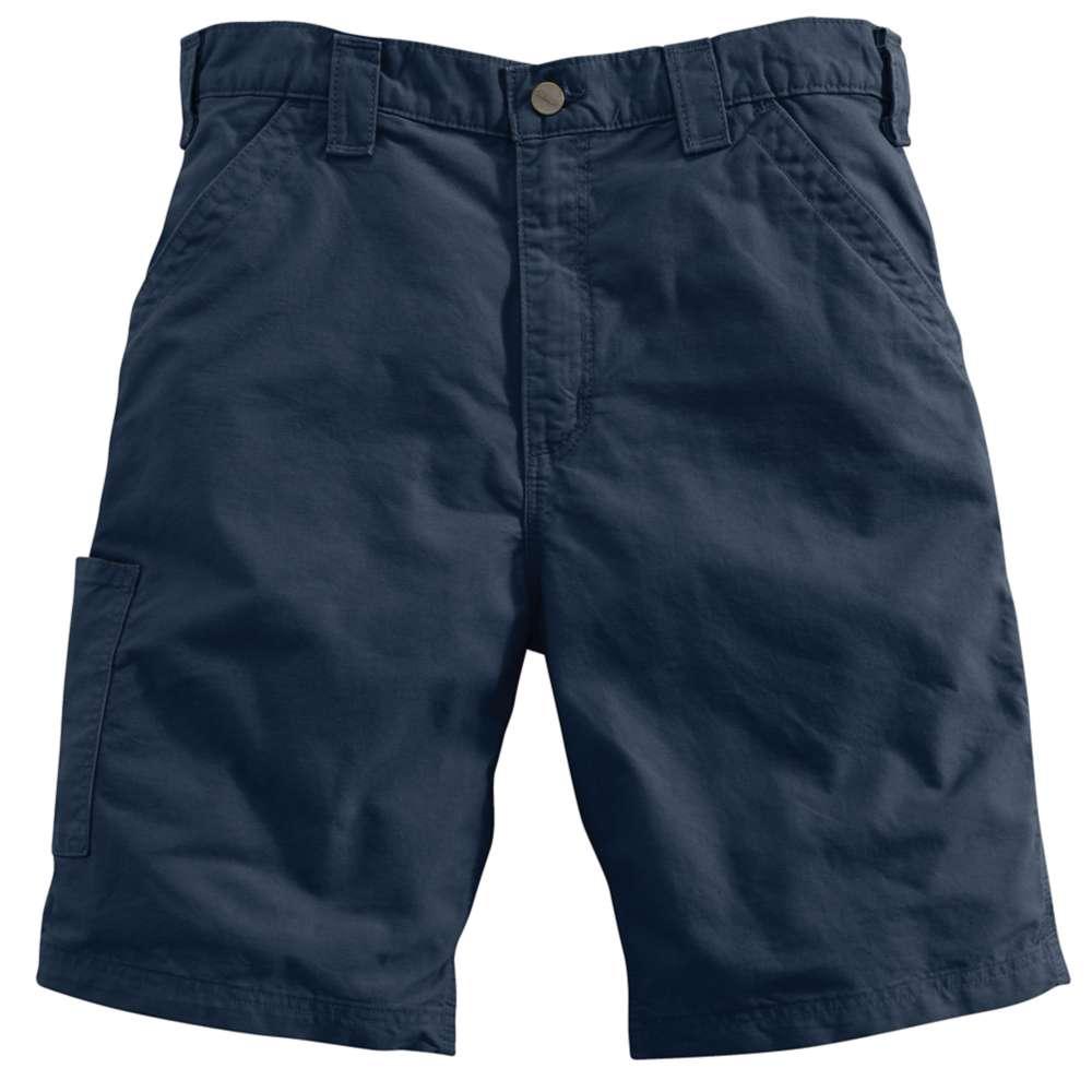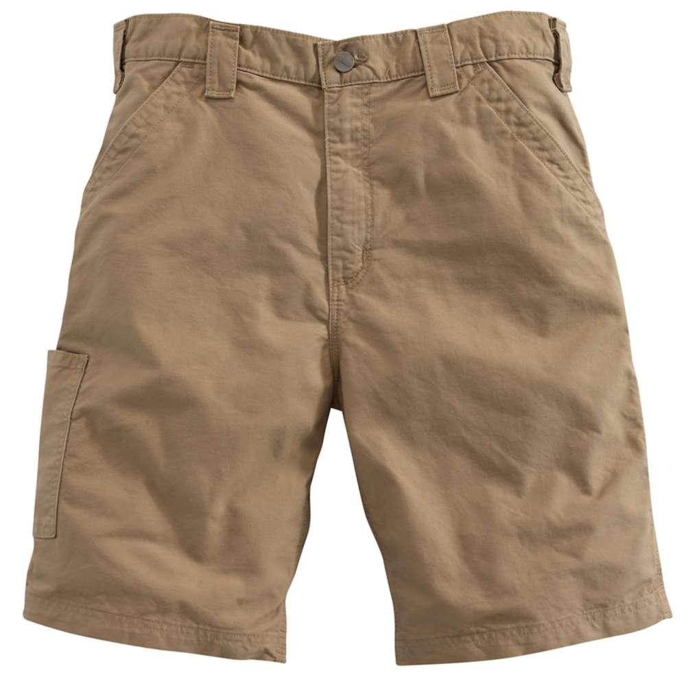 Carhartt Mens Canvas Work Shorts. Lightweight work shorts are made of 7.5-oz. 100 percent ring-spun cotton canvas and sport a 10in. inseam. Left leg features a hammer loop and ruler pocket, while the right leg includes a pocket for cell phone or tools, plus a utility band. Back pockets have reinforced seams.
