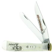 Case and Sons Trapper Dove knife features an unique animal scenes that gives it a distinct and natural narrative. The knife has a Tru-Sharp surgical steel blades, embellished smooth natural bone handle, and XX shotgun shell shield. This model comes packaged in a gift tin.