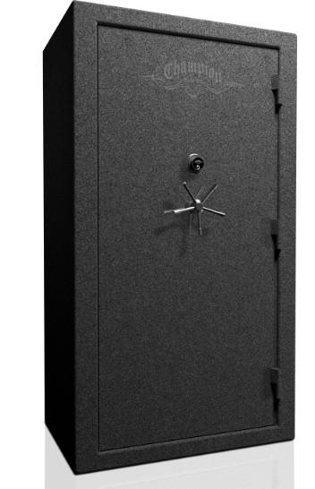 Call for local delivery price and options. Champion Challenger 45 Gun Safe. Fire Rating: 1200 degrees - 60 minutes Dimensions: 40" W x 72" H x 28.5" D Gun Capacity: 52, Granite Textured Paint. Weight: 820 lbs. dial combination lock. 12-Gauge Steel Body 4-1/4-Thick Double Plate Steel Door 12-Gauge Outer Steel, Full 14-Gauge Inner.7/16 Reinforced Door Edge. Five-Spoke Handle.