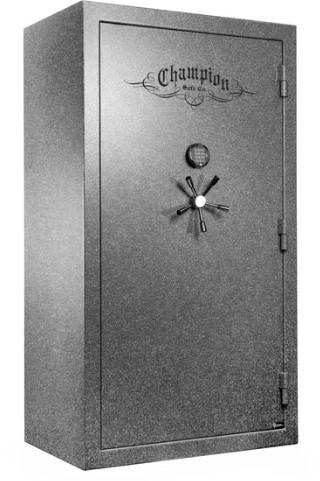 Call for local delivery price and options. Champion Challenger 45 Gun Safe. Fire Rating: 1200 degrees - 60 minutes Dimensions: 40" W x 72" H x 28.5" D Gun Capacity: 52, Granite Textured Paint. Weight: 820 lbs. SG Electronic Lock. 12-Gauge Steel Body 4-1/4-Thick Double Plate Steel Door 12-Gauge Outer Steel, Full 14-Gauge Inner.7/16 Reinforced Door Edge. Five-Spoke Handle.