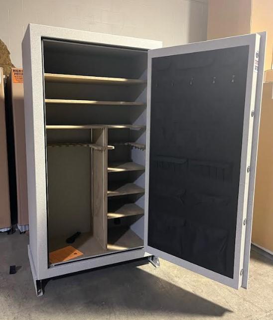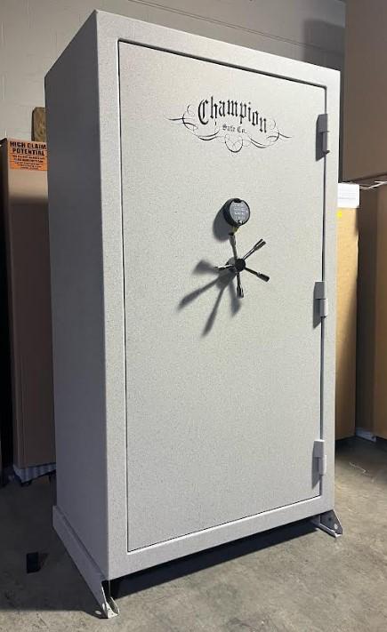 Call for local delivery price and options. Champion Challenger 45 Gun Safe. Fire Rating: 1200 degrees - 60 minutes Dimensions: 40" W x 72" H x 28.5" D Gun Capacity: 52, Textured Sandstone Paint. Weight: 820 lbs. SG Electronic Lock. 12-Gauge Steel Body 4-1/4-Thick Double Plate Steel Door 12-Gauge Outer Steel, Full 14-Gauge Inner.7/16 Reinforced Door Edge. Five-Spoke Handle.