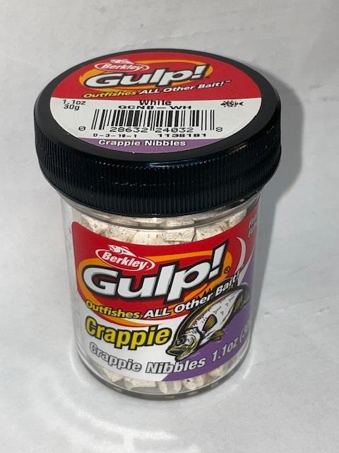 Berkley Gulp! Crappie Nibbles are perfectly sized for crappie hooks and small lures. These unique baits dissolve slowly to create a scent cloud that drive crappies and panfish wild. Incredibly easy to use, they can be applied to jigs or bare hooks with no mess! Berkley Gulp! Crappie Nibbles are formulated with the world's most powerful scent and flavor ingredients ever produced.