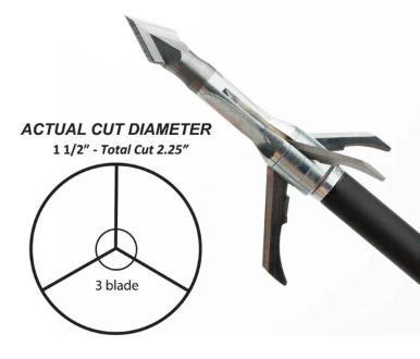 Designed specifically for high-speed crossbows. Tested field point accurate at speeds over 400 fps to 100 yards. Blades stay closed even at fast speeds. Produces devastating holes. "WATCH 'EM DROP"!