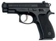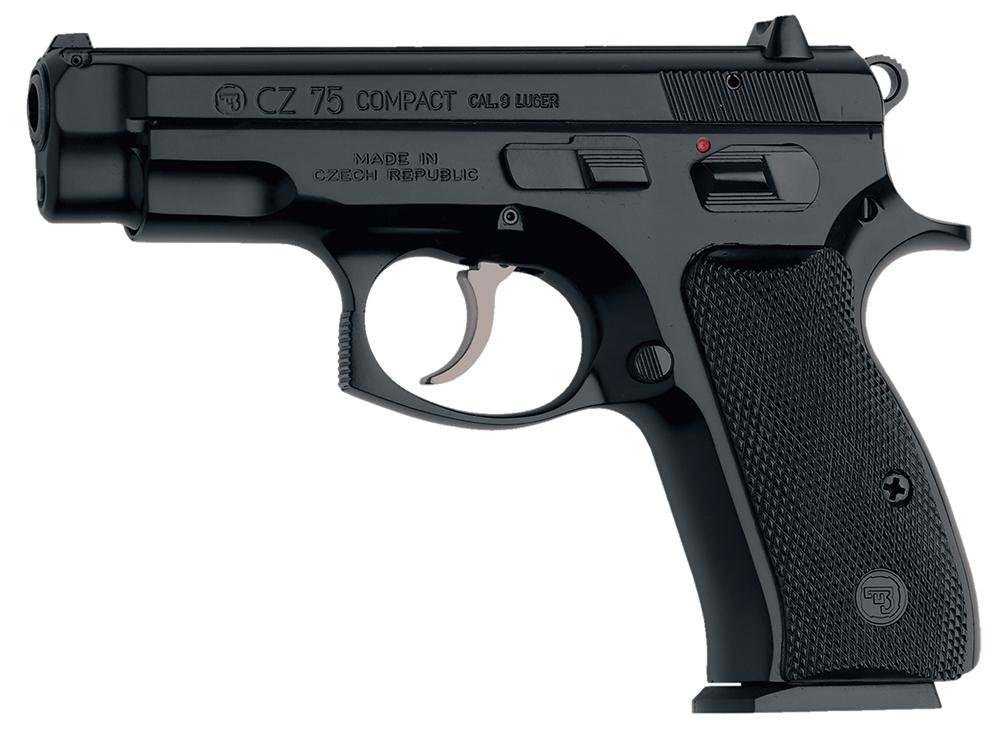 At 5" tall with a barrel length of just under 4", the Compact model shaves a little more than 3/4" off the length and about 1/2" off the height of the full-size CZ 75. Its reduced size allows it to readily disappear under regular clothing. The CZ 75 DA/SA action with a manual safety lever provides the user with two options for carry: hammer-back with the safety on for single action operation or manually decocked for a double action first shot with no need to remember to take off the safety before firing. There is a safety stop on the hammer as well as a firing pin block safety. Because the 75 Compact retains the steel frame of the original 75, only 2.4 oz of weight is lost, making it the softest-shooting compact in the CZ 75 line.