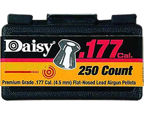 Flat nose lead pellets in flip-top box with belt clip. These pellets are especially suited for target practice.