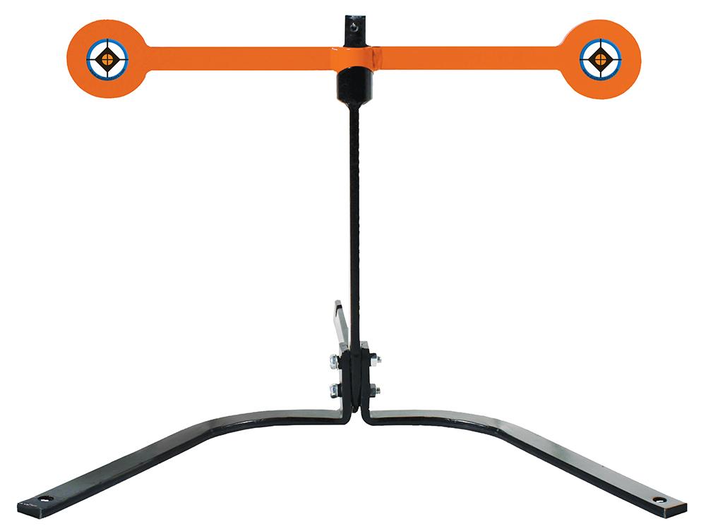 The Heli 22 spinning target has reversible targets for longer life, and sturdy steel construction to handle handgun calibers. As the bullet strikes the targets, the force spins the targets around the attachment bar and back to the set position.