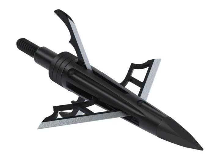 The Dark Knight represents the next level in broadhead development. This hybrid-mechanical broadhead features a pivoting main blade and two mechanical bleeder blades design for maximum penetration potential. Available in 100 and 125 grains.