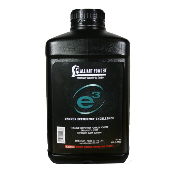 Alliant Powder's new e3 represents the next generation of reloading powder technology, and offers the clay target shooter what he/she needs to maintain the winning edge. This 12 ga powder possesses a perfect balance of the qualities desired by competitive shooters. e3 features reduced charge weights, is the cleanest burning 12 ga. shotshell powder available, and has environmental stability and ultra premium quality to provide more consistent and reproducible performance all-year round. It is destined to become the shot shell powder by which all others are judged, and like all of Alliant's flake powders, it is proudly made in the USA. Named after its core qualities of energy, efficiency and excellence, this exciting new powder offers 12-gauge target shooters a high-performance product that stands apart from the rest.