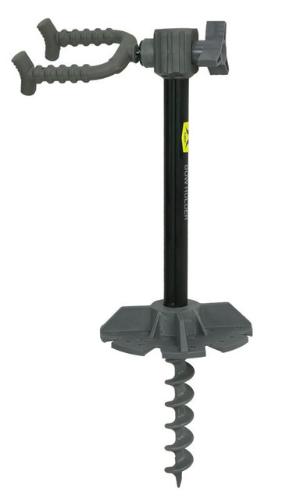 Position your bow at your fingertips while you sit on the ground hands-free. The portable EARTH ANCHOR™ BOW HOLDER quickly digs into the ground with a 6” Deep Earth Auger. Combined with a Rugged Ground Plate, this bow holder is Ultra Stable & Secure. Designed to work with most bows and perfect for hunting from a ground blind or shooting in the backyard - never lay your bow on the ground again! Premium Silent-Grip™ Limb Fork adjusts 360° and locks securely with geared teeth at the perfect angle for grabbing your bow when needed.