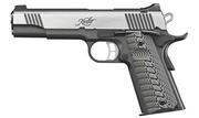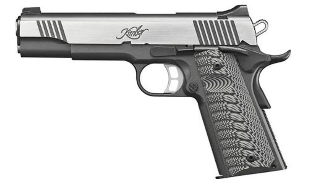 The striking look of the Kimber Eclipse Custom has been elevated to a new level, featuring an all-steel construction, a gray KimPro II frame, brush-polished slide, matte black small parts, 30 lines-per-inch front strap checkering, tritium night sights and black and gray G-10 Cyclone grips.