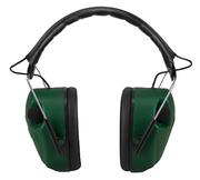 Caldwell's standard E-Max hearing protection combines great circuitry with a low profile earcup ideal for shotgun shooters and action shooters. The microphones in the E-Max amplify sounds below 85 decibels, which includes normal communication, range commands, and environmental sounds. Above 85 decibels, the microphones shut off for a split second to protect the shooter's hearing. Two microphones, one in each cup, give the user true stereo sound and allow the user to identify the directional source of a sound. It includes an integrated audio input jack allowing music to be played. E-Max hearing protection has a padded headband, volume control knob, and power indicator light. E-Max earmuffs provide a 23NRR and run on 2 AAA batteries (not included). This model has a green finish on the earcups.