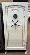 Call for local delivery options and price. Champion Estate 14. Gloss Ivory Paint with Black Chrome Hardware. Standard Interior with Drawers. SG Electronic Lock. LED Internal Lighting. External Dimensions: 24" W x 48" H x 22.5" D. Weight: 425 lbs. Fire Rating: 1200 degree for 120 minutes. 11-Gauge Steel Walls. 4.5"-Thick Double Plate Steel Door. 10-Gauge Outer Steel, Full 14-Gauge Inner 3/4" Reinforced Door Edge.