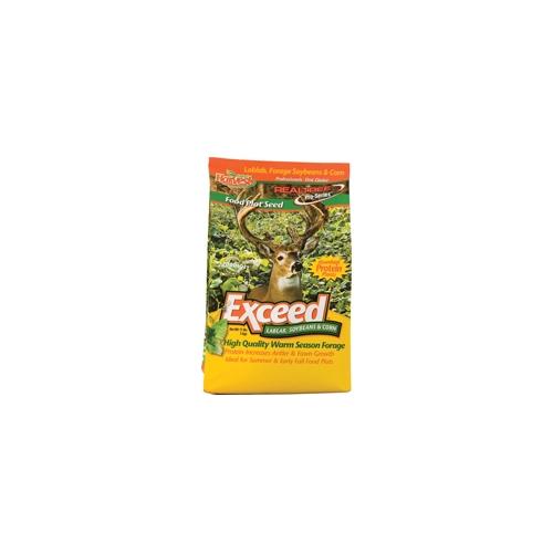Evolved Habitats Realtree Pro-SeriesExceed Food Plot Seed is a special blend designed to withstand high pressure. Exceed is a blend of lablab, forage soybeans and corn to provide deer with a variety of highly palatable food sources. It can be planted during the spring, summer or fall to supply deer with the nutrition they need. This 11 pound bag will seed approximately 1/2 acre
