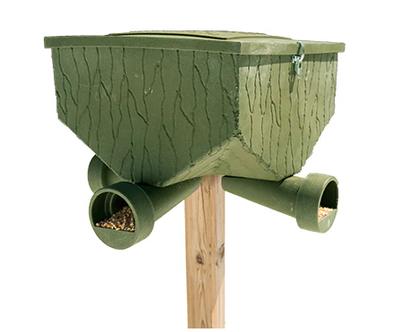 The Feedbank is a gravity-fed deer feeder designed to elevate with a single center post. This eliminates any obstruction for bucks to access the feed unlike standard tripod feeders. This standout design results in the most economical, high-quality deer feeder on the market.