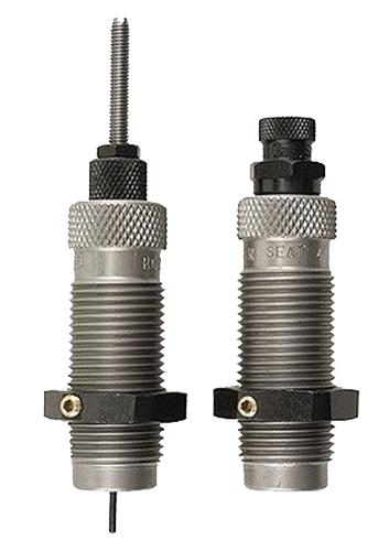 This two-die set is intended for reloading bottleneck cases, and consists of a Full-Length Sizer Die with an Expander-Decapping Unit, and a Seater Die with Bullet Seater Plug. The Full-Length Sizer Die brings the case to SAAMI minimum cartridge dimensions. It sizes the outside of the case, de-primes and expands the neck to accept the bullet. The die has vents to prevent case damage caused by trapped air and for excessive lubricant. Headspace is held to minimum tolerances to avoid changing the case body length during full length sizing. The included Seater Die has a built-in roll crimper to secure the bullet at the same time as it's seated.