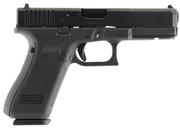 The G17 Gen5 features a no finger grooved, multiple backstrapped, rough textured frame with hundreds of miniature spikes which results in remarkable traction for extreme environments and gloved operators. The frame also features a smooth trigger, reversible mag release, and ambidextrous slide stop. The magazine comes with a floor plate which is extended at the front for faster magazine change, and an orange follower, while the flared mag-well makes it easier to funnel the magazine into the mag-well. Glock's nDLC finish provides a tougher, more durable protection against corrosion and scratching. The Glock Marksman barrel features a barrel rifling which delivers improved accuracy. This Glock Gen5 model has fixed sights and a 17-round capacity.